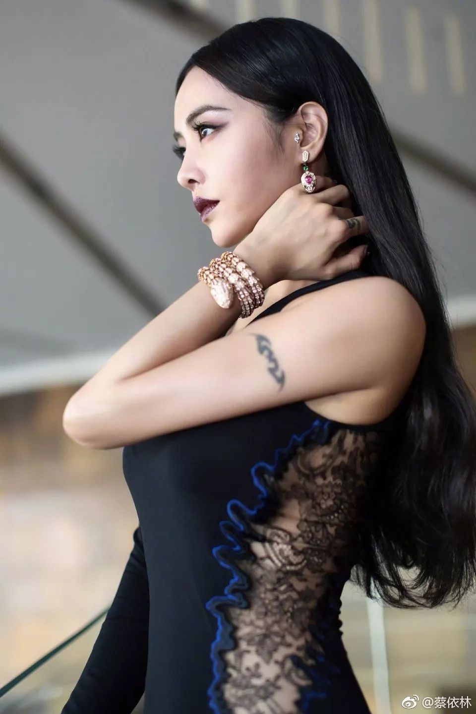 最后就是一直走酷酷路线的蔡依林,在驾驭下眼影妆的时候也加入了自己的风格。她选择颇具个性的紫黑色。