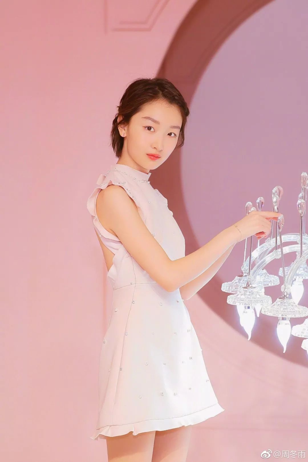 周冬雨的下眼影妆选择的颜色很浅,淡粉色轻轻地化在眼下,营造出一种“害羞”的效果,整体看上去软萌Feel十足。