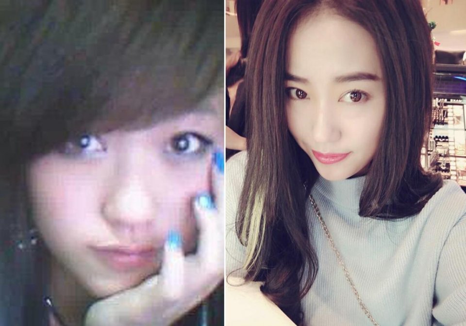 当年真的是丑,又黑又胖,头发简直是被炸了一样。现在虽然说不是大美女,但终归能看了,肯定美颜了但是现在白很多。