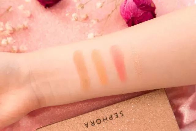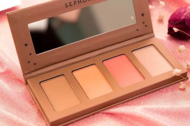 而且颜色都非常的实用,阴影色上脸很自然,适合咱们亚洲人。腮红色一个橘色调一个红色调,都非常的显气色。高光色属于香槟白色,上脸不会夸张也不会显毛孔。
