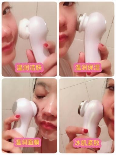 [温润洁肤模式]时,温润导头处于正电位;温润导头与肌肤形成微电流闭合回路,微电流从脸部肌肤往导头方向即由里往外流动,在40℃的温热效果下,扩张肌肤毛孔,导出残留在毛孔内的细微污垢,促进深层清洁肌肤。