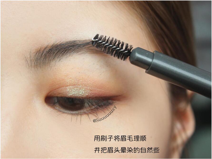 使用前,可以用另一头的眉刷先把眉毛梳理好哦~