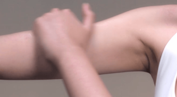 现在我们将如新ageLOC紧致凝胶均匀涂抹好之后,就可以开始按摩了;打开如新Spa机在目标区域以环绕转动的形式进行按摩,这是一个要点,用环绕形式按摩不仅能疏通胳膊肌肉的紧张感使其放松下来,更能让紧致凝露的精华被更好地吸收,也能让自己的胳膊感受到舒缓和放松。