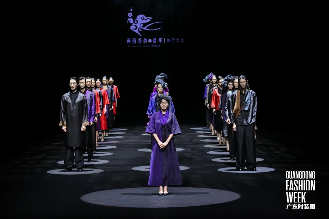 9月27日,燕梅香纱高级定制“燕梅香纱.爱华丨她予之光”品牌发布会在广州番禺万博时尚广场圆满成功举办。在一场演绎非遗美学的香云纱服饰动态秀上,设计师陈燕梅把传统非遗的香云纱材质设计制作了系列简约时尚的创新作品,设计感十足的色彩搭配,融合当代高定消费人群,展现现代香云纱服饰的时尚风采。