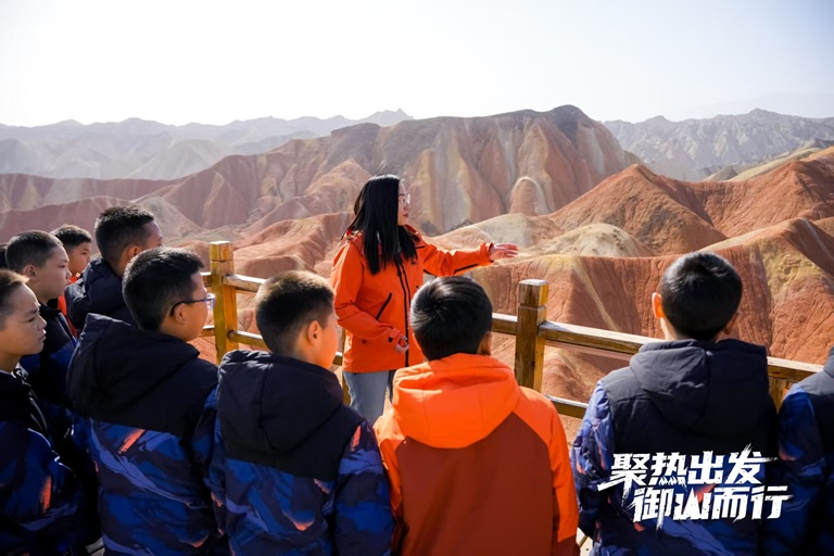 次日,乔丹儿童将新品发布的热度延伸至壮丽的张掖七彩丹霞。品牌邀请王凯文、傅铂涵、秦俊熙及亲子家庭、户外达人及时尚博主,在地矿工程师王芳芳的带领下,开展「这里是中国·甘肃张掖七彩丹霞」徒步探索,以真实场景检验产品性能。