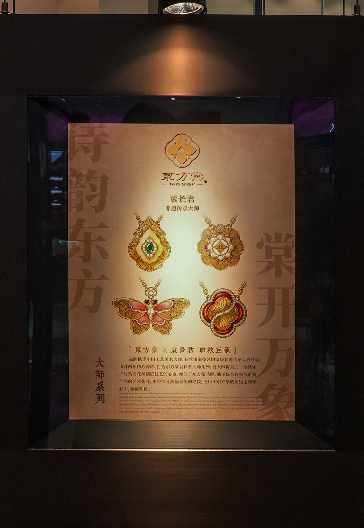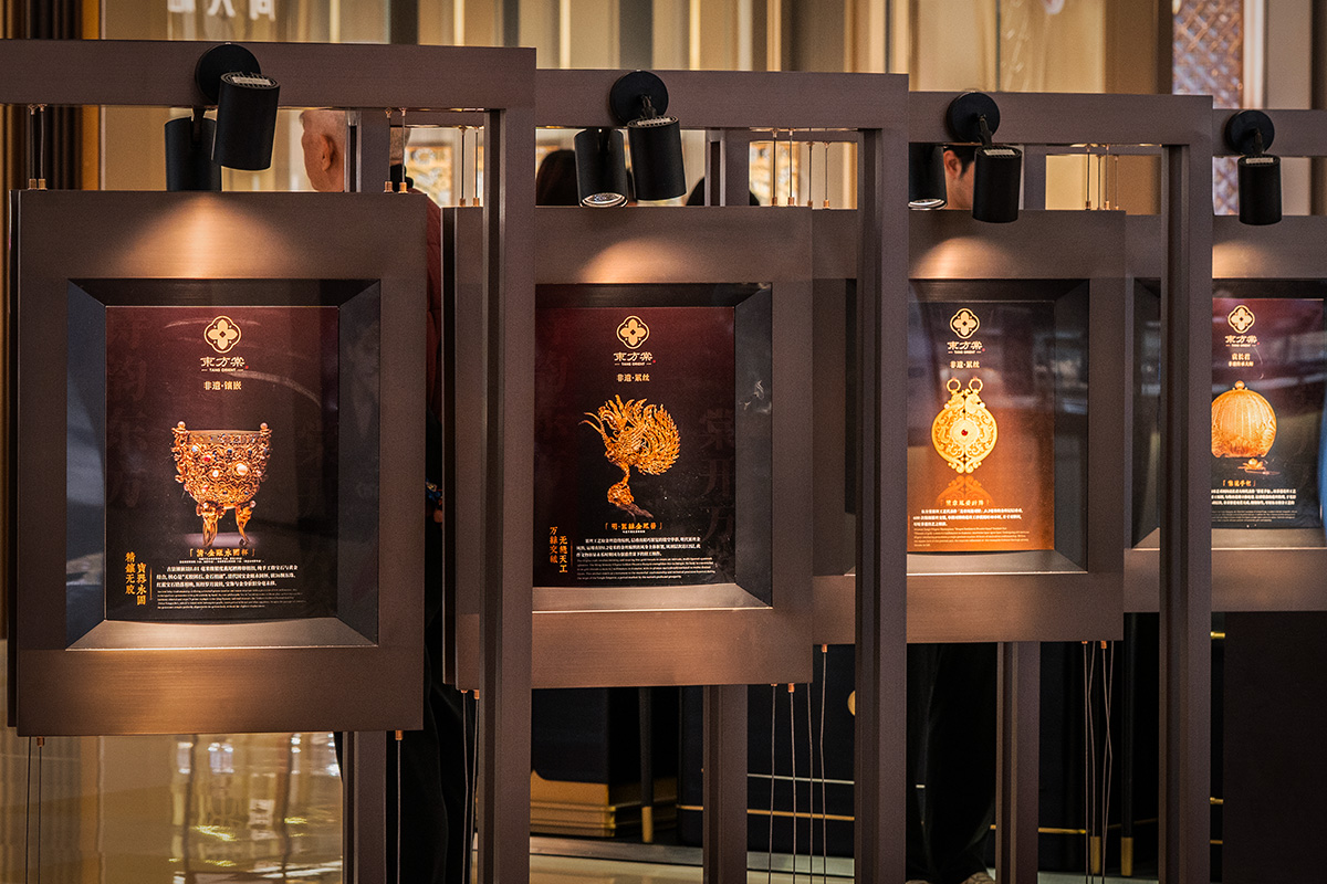 打破“黄金老气、只重保值”的刻板印象,东方棠将快闪作为非遗技艺传播与品牌亮相的双重载体,深度绑定非遗大师袁长君,带来正统古法传承技艺与艺术品级黄金作品,以专业度与稀缺性打动高知圈层。
