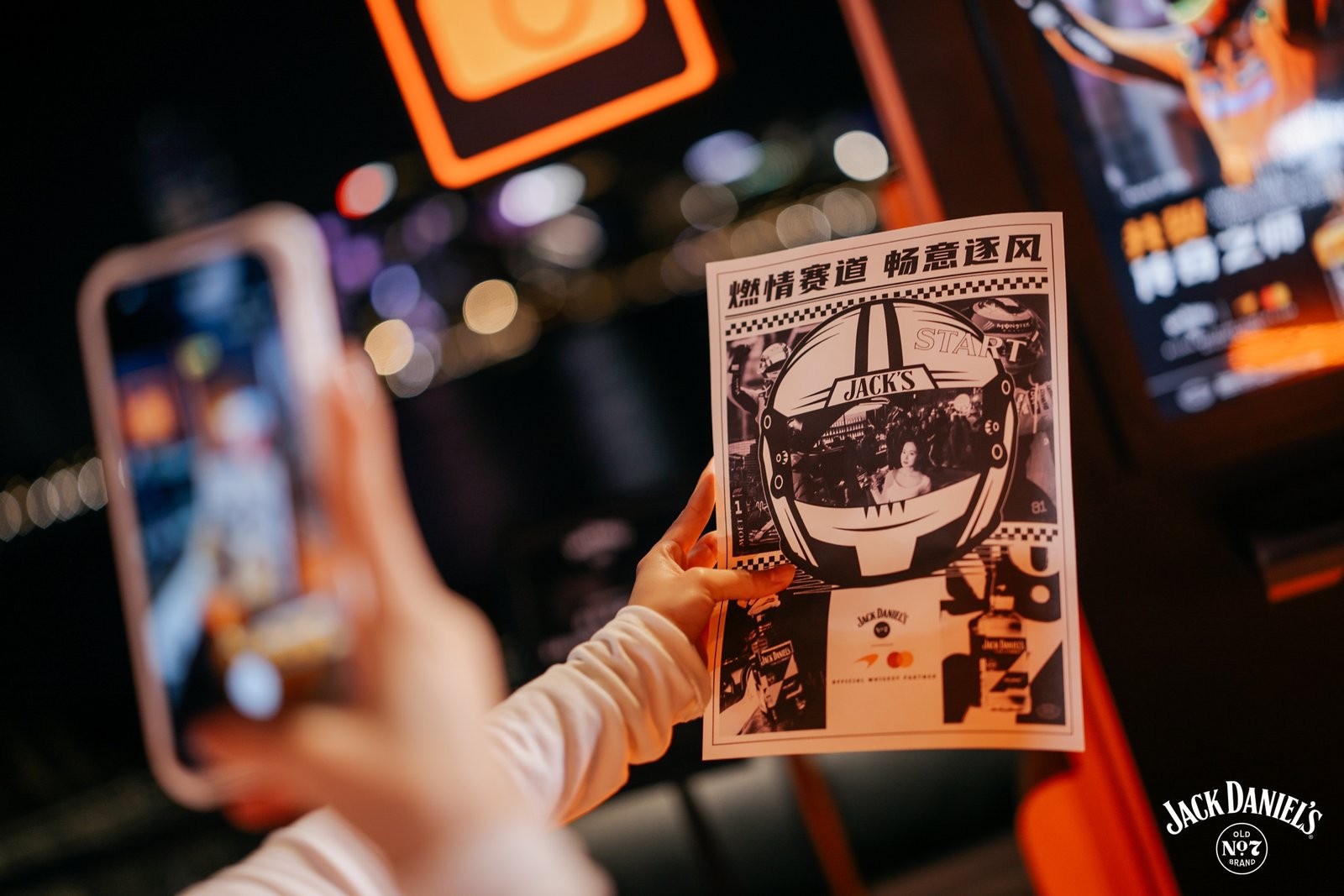 步入杰克丹尼x迈凯伦联名快闪,仿佛置身于微缩的赛车世界。在“杰克酒吧”试饮特调,举杯微醺畅聊;前往“领奖台”潮拍打卡,定格高光时刻;到“反应力挑战”区测试手速极限,或在“加油站快照机”领取专属赛车手报纸,让赛道燃情与逐风般的畅意触手可及。在引擎轰鸣与威士忌醇香交织中,以丰富的互动体验与视觉打卡点,引领来宾沉浸式感受速度与激情。这不仅是一次品牌的跨界展示,更是一场关于生活方式的热烈宣言。